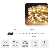 LAMPKI LED DRUCIKI NA SZPULI 500L CIEPŁY BIAŁY, DŁ. 3 + 50 M *8523