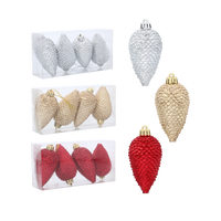 KPL. 4 OZDÓB VÁNOČNÍCH ŠIŠEK 8 CM ČERVENÁ/ZLATÁ/STŘÍBRNÁ *3188