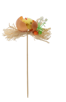 VELIKONOČNÍ DEKORACE NA ŠTÍTKU - KUŘE NA SLAMĚ 5 x 23 CM MIX 3 VZORŮ bal=12ks *9120