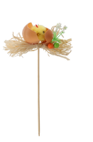 VELIKONOČNÍ DEKORACE NA ŠPÍZ - KUŘE V VEJCÍ NA SLÁMĚ 5 x 23 CM MIX 2 BARVY balení=12ks *9137