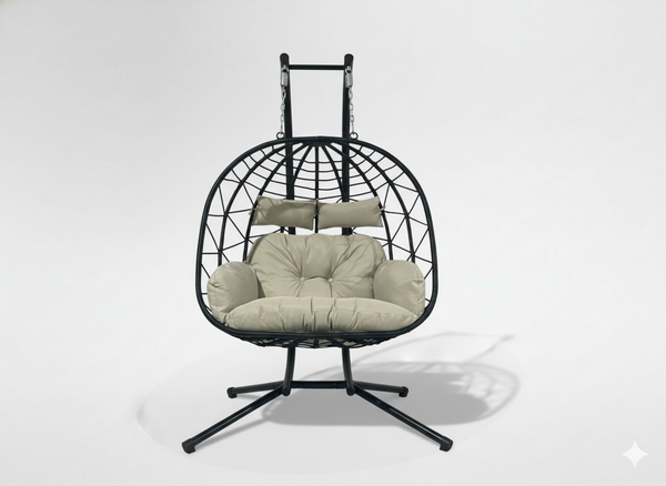 FOTEL WISZĄCY PODWÓJNY SKŁADANY LUVO CZARNY, PODUSZKA - JASNY SZARY, RAMA - CZARNA 🖤