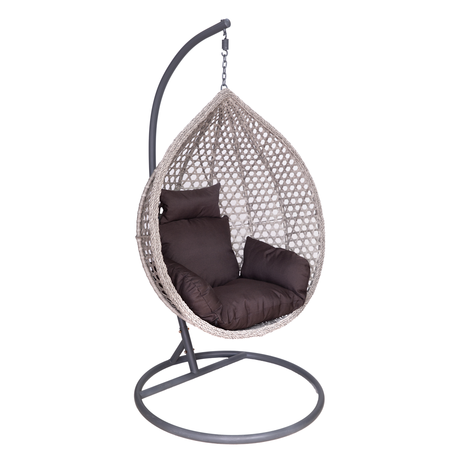 FOTEL WISZĄCY SZARY, PODUSZKA - SZARA, RAMA - CIEMNOSZARA 107 x 68 x 120 CM