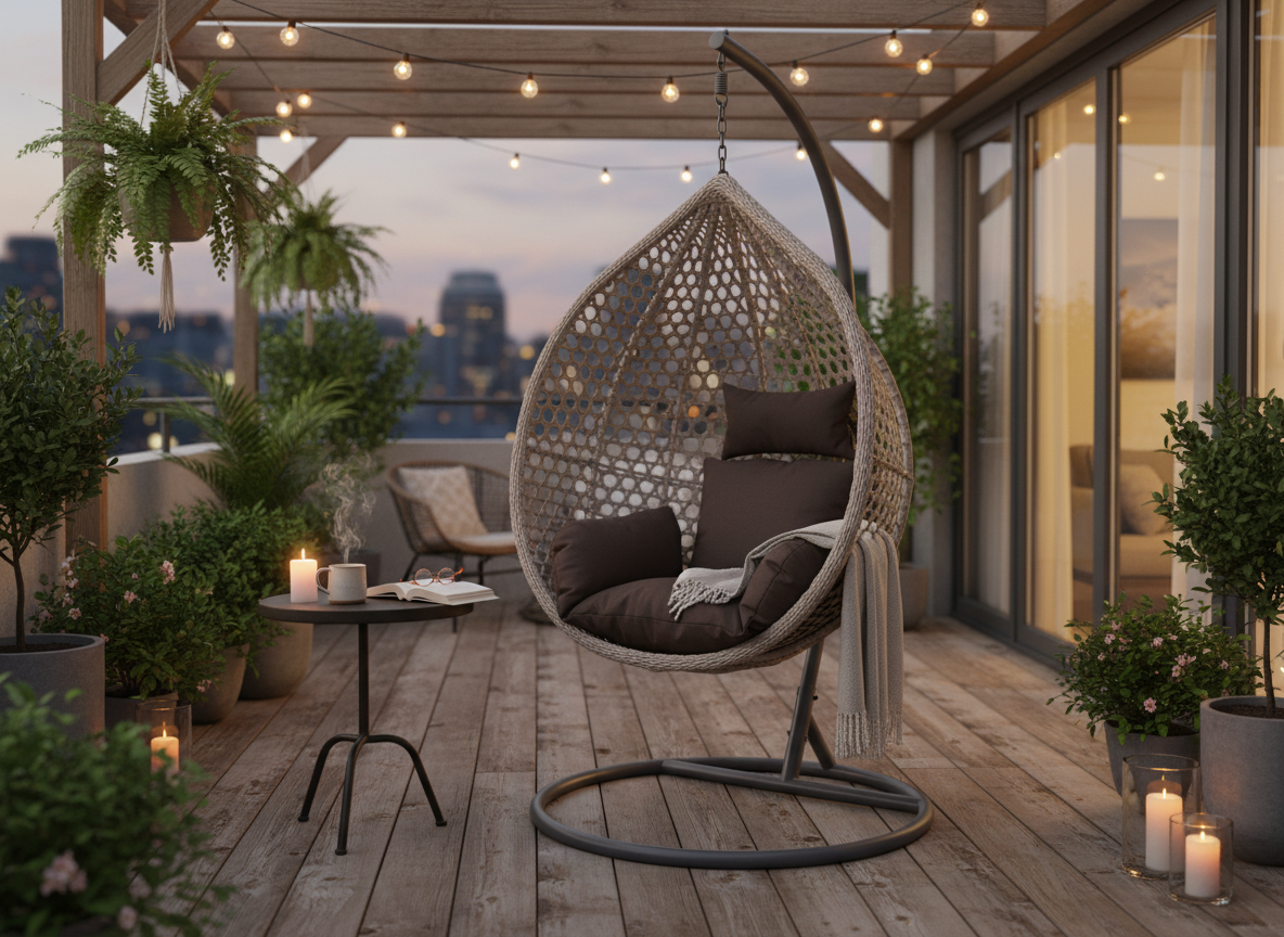 Fotel wiszący – szary minimalizm i maksymalny komfort 🌫️🪑