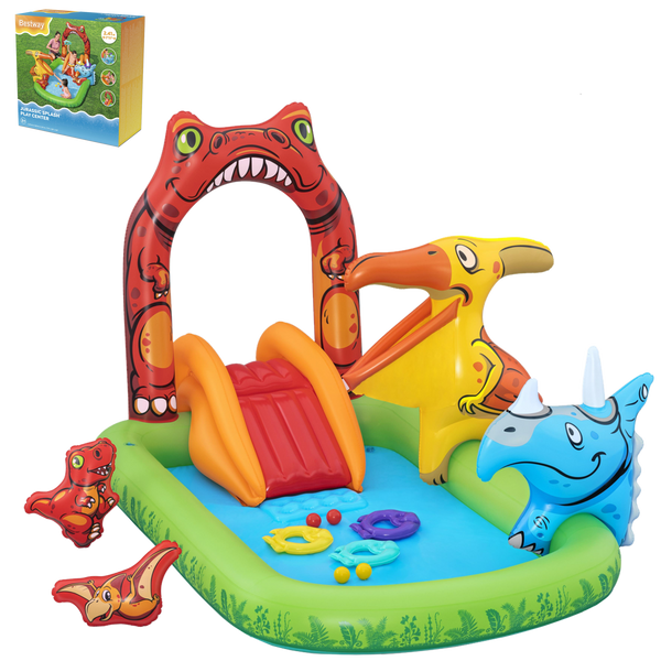 Objemový hrad / bazén s tobogánem Jurassic o rozměrech 2,41 x 1,4 x 1,37 m je skvělá zábava pro děti na zahradě. Hřiště vybavené vodním tobogánem poskytuje hodiny radosti a aktivity na čerstvém vzduchu. Díky prostorným rozměrům se děti mohou volně bavit, a vodní tobogán přidává vzrušující zábavu. Ideální volba na letní dny, vytvářející ideální podmínky pro hraní ve vodě na zahradě.