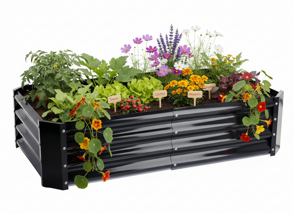 Stwórz idealną przestrzeń do uprawy warzyw 🥕, ziół 🌿 i kwiatów 🌸 dzięki solidnej i stylowej grządce warzywno-kwiatowej. Jej nowoczesny antracytowy kolor, praktyczny prostokątny kształt 📏 oraz trwała konstrukcja ze stali ocynkowanej 🔩 sprawiają, że doskonale sprawdzi się zarówno w ogrodach, na działkach, jak i przydomowych przestrzeniach 🌼. To funkcjonalne, eleganckie i wyjątkowo trwałe rozwiązanie dla każdego, kto ceni sobie porządek, wygodę i harmonijne aranżacje ogrodowe 🌱✨