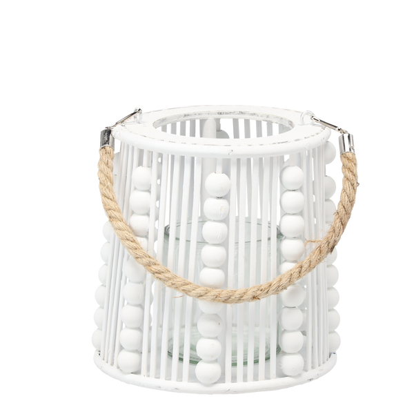 LAMPION Z KORALIKAMI 20 x 19 CM BIAŁY