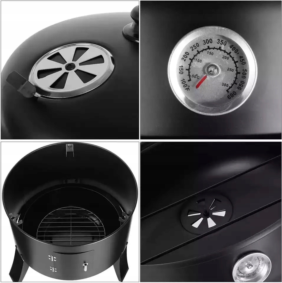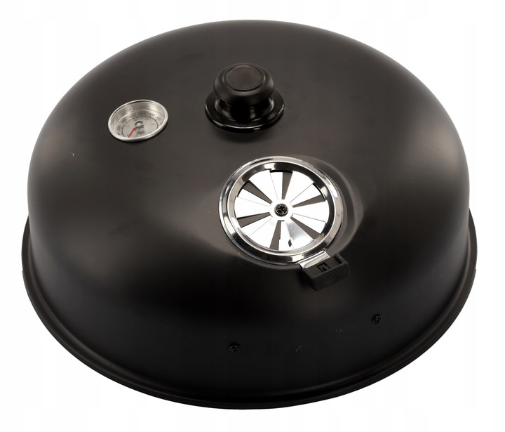 V sadě se nachází užitečný poklop, který obsahuje nezbytnýteploměr, díky němuž můžete kontrolovat teplotu v grilu s udírnou 3v1. Poklop má také ventilační otvor s možností regulace průtoku páry.