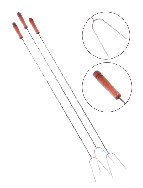 Ohnivé vidle jsou nezbytným doplňkem pro grilování a pečení na ohni. Díky dlouhým držadlům umožňují bezpečné a pohodlné otáčení jídla na ohni a chrání ruce před popálením. Ideální na společné hodování na čerstvém vzduchu.