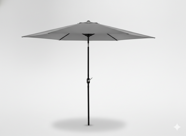 - Parasol ogrodowy skośny 3 m w kolorze szarym z funkcją regulacji nachylenia. Solidna stalowa konstrukcja, wodoodporna czasza z poliestru 180 g/m², ochrona UV, łatwe składanie dzięki korbce oraz praktyczny pokrowiec w zestawie.