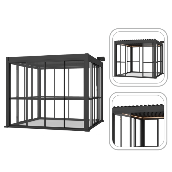 POSUVNÉ POLYKARBONÁTOVÉ DVEŘE PRO ALUMINIOVOU PERGOLU ŠEDÉ 3 M *0609