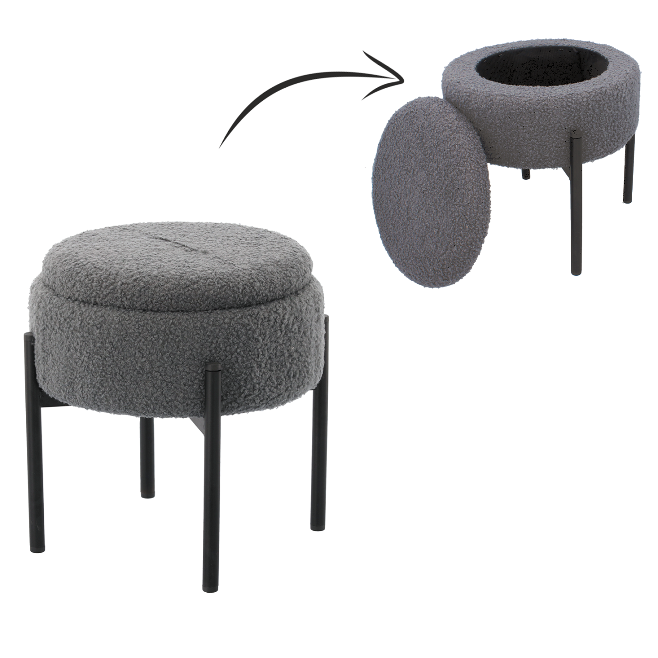 🪑 PUFA OKRĄGŁA NA METALOVÝCH NOZkách ZE SCHOWKIEM 28 x 31 CM – ŠEDÁ