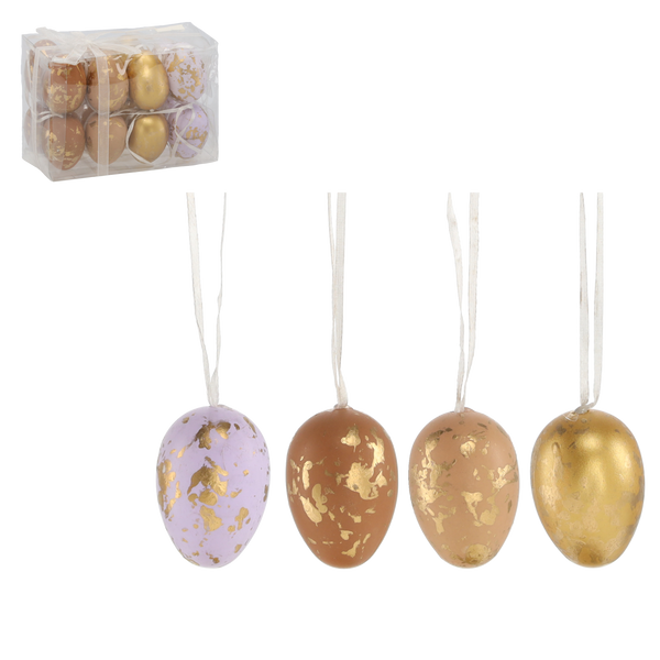 SADA 16 VELIKONOČNÍCH VAJÍČEK 16,5 x 9 x 12 CM S HÁČKEM HNĚDÁ - ZLATÁ - FIALOVÁ * 8104