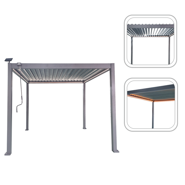 ŠEDÁ HLINÍKOVÁ ZÁHRADNÁ PERGOLA LED 3 x 3 x 2,5 M *0555