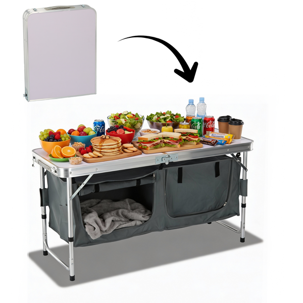 Masz dość bałaganu na kempingu? Ta składana szafka turystyczna to idealne rozwiązanie dla wszystkich, którzy cenią porządek nawet w plenerze! 🌄 Dzięki przemyślanej konstrukcji i przestronnemu blatowi pomieścisz wszystko, czego potrzebujesz – od naczyń po produkty spożywcze.