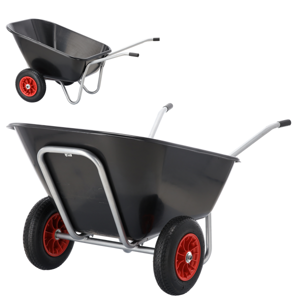Potrzebujesz solidnego sprzętu do ogrodu? Czarna taczka ogrodowa z ogromną pojemnością zasypową 280 litrów poradzi sobie z każdym zadaniem! Dzięki dwóm pneumatycznym kołom i lekkiej konstrukcji wykonanej z wytrzymałego plastiku i malowanej proszkowo ramy, transport ciężkich ładunków staje się lekki jak piórko ✨