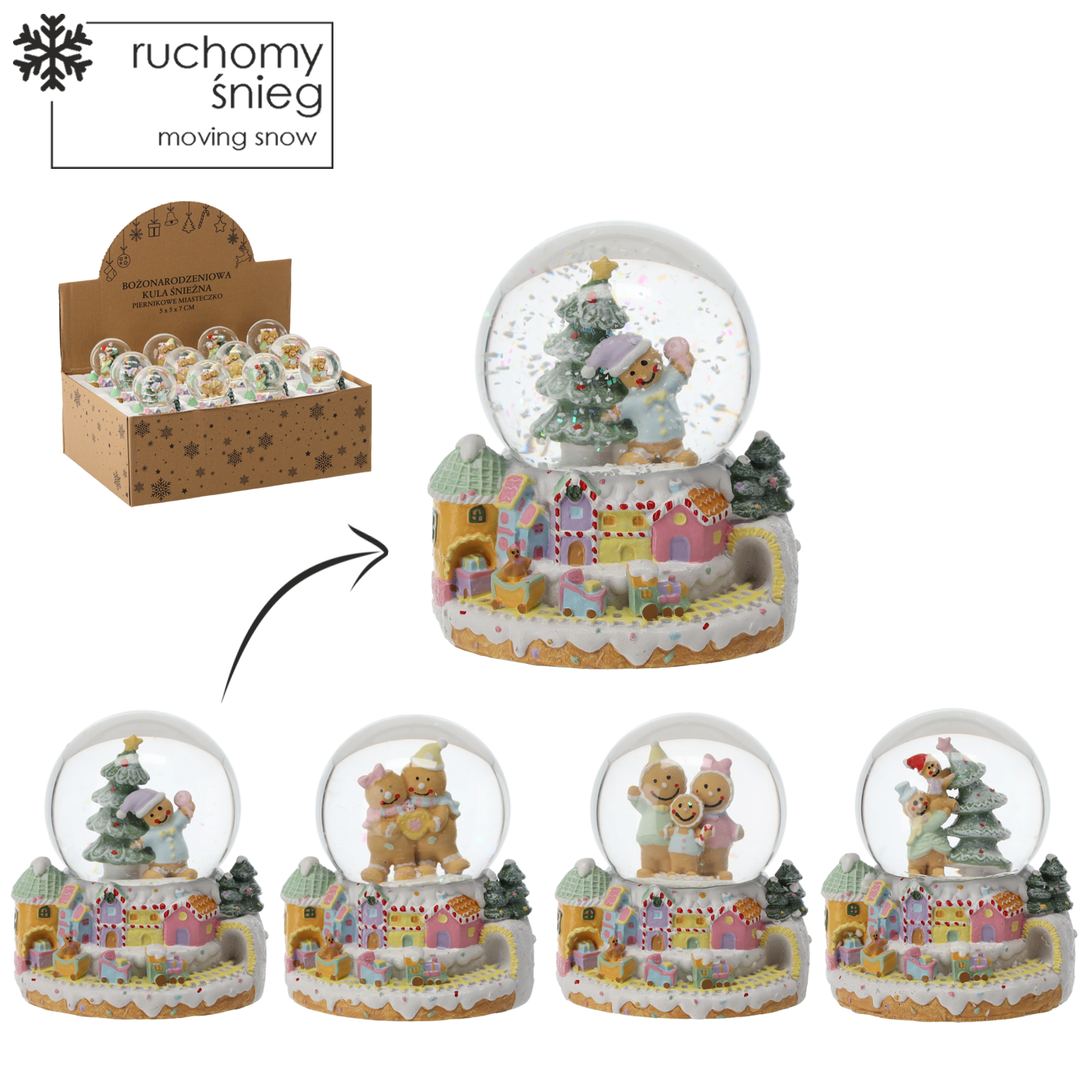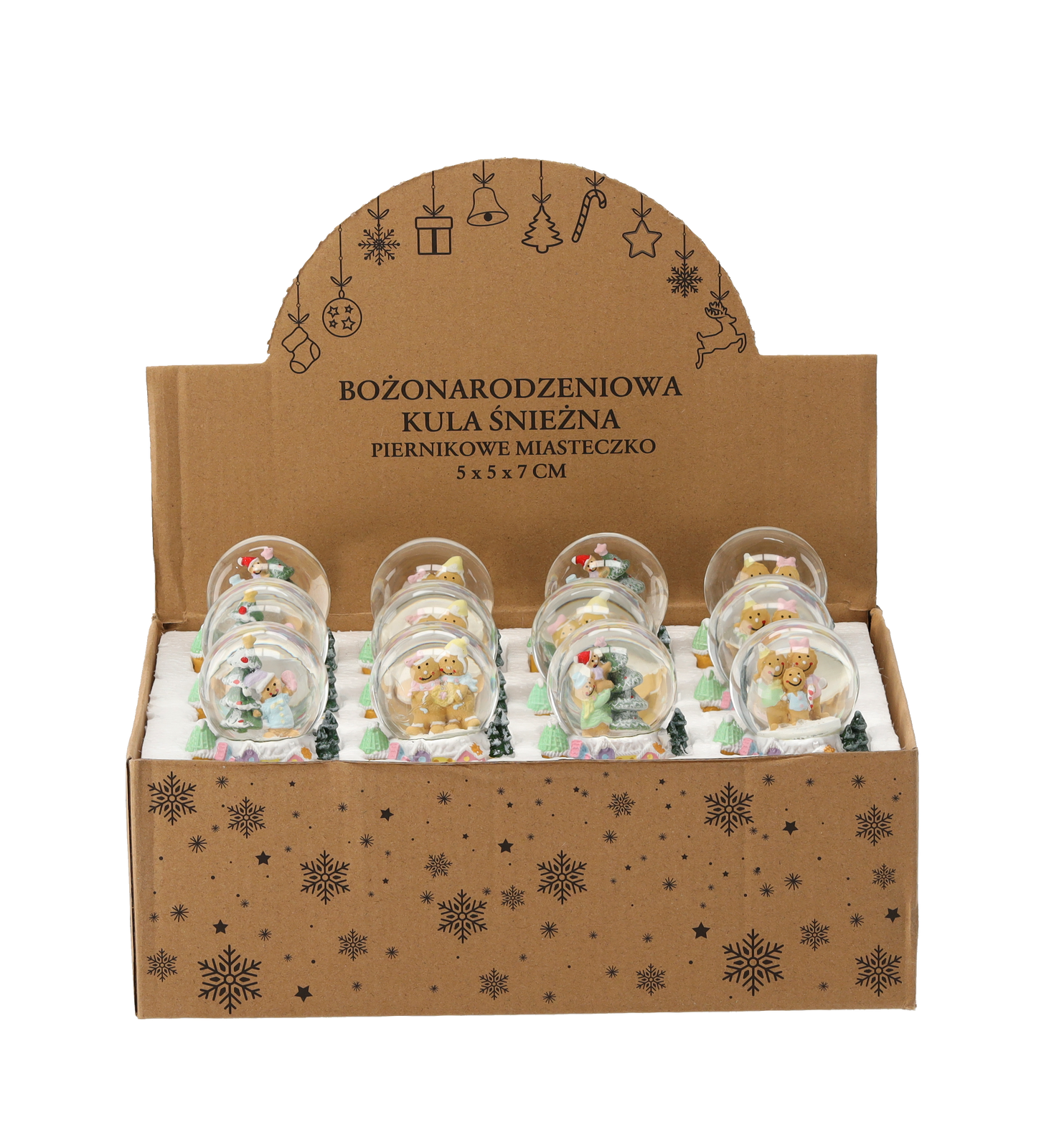 VÁNOČNÍ SNĚHOVÁ KULIČKA - PERNÍKOVÉ MĚSTEČKO 5 x 5 x 7,5 CM MIX VZORŮ disp=12ks *5706