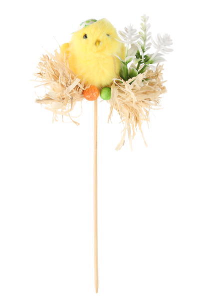 VELIKONOČNÍ DEKORACE NA ŠTÍTKU - KUŘE NA SLAMĚ 5 x 23 CM MIX 3 VZORŮ bal=12ks *9120