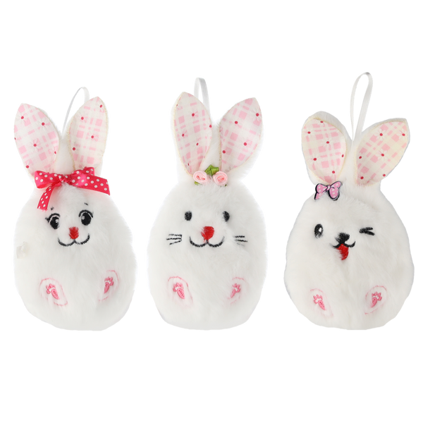 VELIKONOČNÍ DEKORACE - ZAVĚŠENÍ S PÍŠŤALKOU 6 x 13 CM ZAJÍČEK MIX 3 VZORY balení=12ks *9151