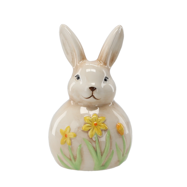 VELIKONOČNÍ FIGURKA - KERAMICKÝ ZAJÍČEK S KVĚTINAMI 7,4 x 7,4 x 12 CM bal=8ks *6730