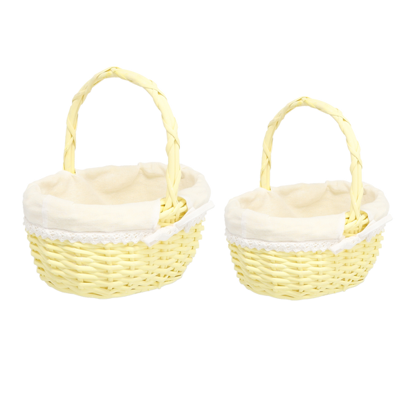 ZESTAW 2 KOSZYKÓW RATTANOWYCH Z RĄCZKĄ I MATERIAŁEM – ŻÓŁTY