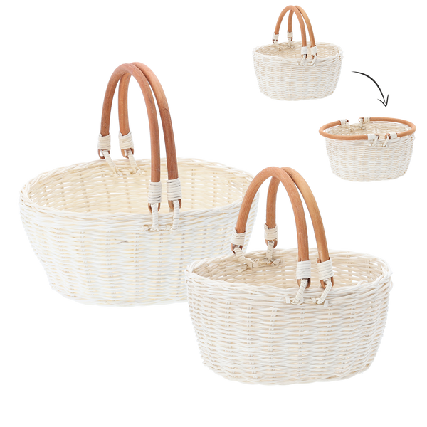 ZESTAW 2 KOSZYKÓW RATTANOWYCH Z UCHWYTAMI – BIAŁY