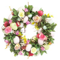 VELIKONOČNÍ DEKORACE - VĚNEC 30 CM S KVĚTY A VEJÍČKY *9967