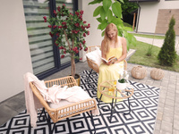 SADA ZAHRADNÍHO NÁBYTKU Z PLETENÉHO PÁSMA (2 KŘESLA + SOFA + STŮL) - BEZOVÁ, POLŠTÁŘE - BEŽOVÉ *8517