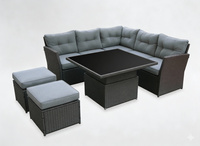 ZESTAW MEBLI OGRODOWYCH "CESME" NAROŻNIK + STÓŁ+ 2 PUFY