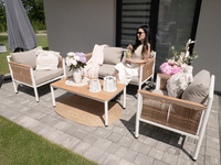 ALUMINUM FURNITURE "NIKOZJA" SET (3-SEATER SOFA + 2 ARMCHAIRS + TABLE) BEIGE + BEIGE CUSHIONS