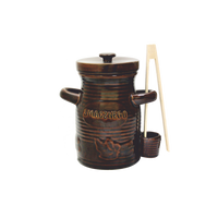 CERAMIC PICKLE JAR 1,5 L WITH TONGS BROWN