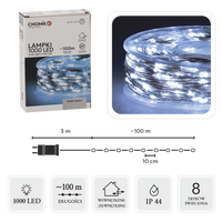 LAMPKI LED MICRO NA SZPULI 1000L ZIMNY BIAŁY, DŁ. 3 + 100 M *8561