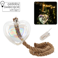 GLASS ORNAMENT LED - HEART ON JUTE STRING