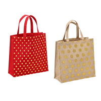BAG MADE OF JUTE 30 X 30 X 10 CM WITH DOTS - RED / NATURAL PACK=5PCS