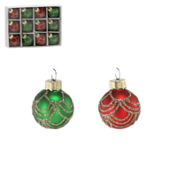 SET OF 12 GLASS ORNAMENTS - RED-GREEN