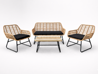 ZESTAW MEBLI OGRODOWYCH (SOFA, 2 KRZESŁA, STOLIK) - BRĄZOWY, PODUSZKI - CZARNY