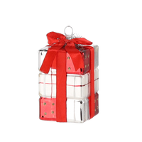 GLASS ORNAMENT - PRESENT WHITE-RED 4.7 X 4.7 X 8.3 CM