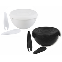 BOWL WITH LID 6L+SET OF SALAD SPOONS WHITE/BLACK1670