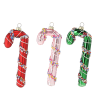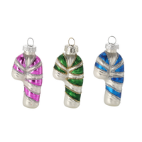 GLASS ORNAMENT - SMALL CANDY CANE MIXED COLORS BLUE-GREEN-PINK 3.8 X 2.2 X 7.5 CM