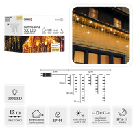 KURTYNA METEORY LED 10 SZT 30 CM CIEPŁY BIAŁY, DŁ. 3 + 2,7 M WEWN/ZEWN *1766