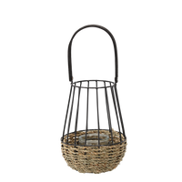 BOHO LANTERN H-23/25 CM STRIPED WITH GLASS INSERT