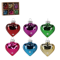 SET OF 6 GLASS CHRISTMAS TREE DECORATIONS - HEART