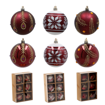 SET OF 6 CHRISTMAS BAUBLES DARK RED 8 CM