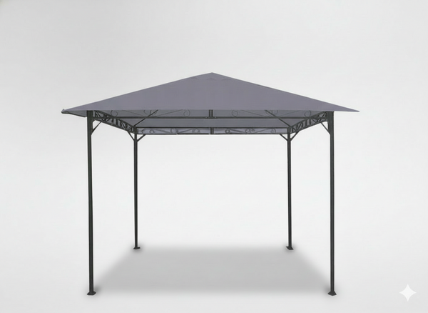 - Stabilny pawilon ogrodowy 300x300 cm w kolorze szarym. Solidna stalowa konstrukcja malowana proszkowo, trwałe poszycie poliestrowe 140 g/m², szybki montaż w 30 minut. Idealny do ogrodu, na taras i spotkania na świeżym powietrzu.