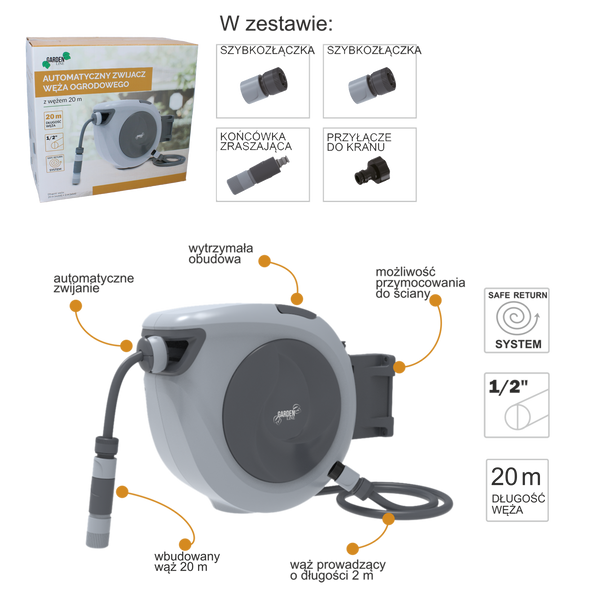 AUTOMATYCZNY ZWIJACZ WĘŻA OGRODOWEGO Z WĘŻEM - 20 M 🌿💧