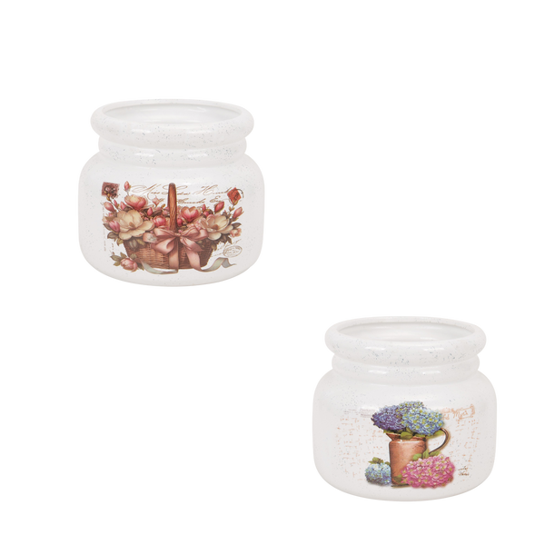 CERAMIC POT COVER 20 x 20 x 16.5 CM WHITE MIXED PATTERNS
