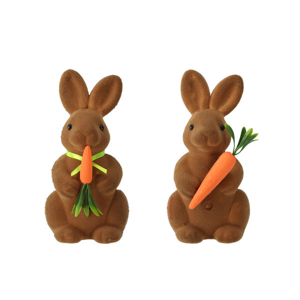 EASTER DECORATION - BUNNY WITH CARROT BROWN 10 x 11 x 21 CM MIX 2 PATTERNS