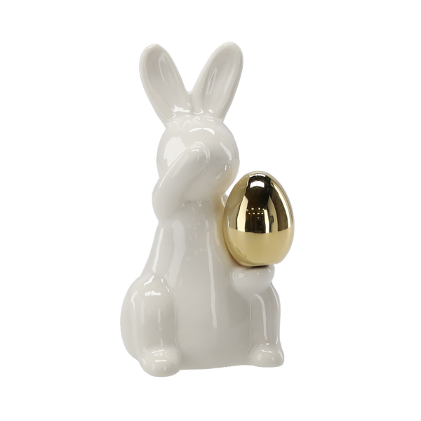 EASTER FIGURINE – CERAMIC BUNNY WITH GOLDEN EGG 7 x 7 x 13 CM PACK=12 PCS