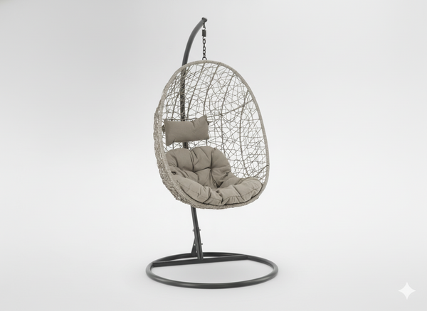 Szukasz relaksu na najwyższym poziomie? Ten elegancki, szary fotel wiszący z poduszką to idealne miejsce na chwilę odpoczynku – zarówno w domu, jak i w ogrodzie.
