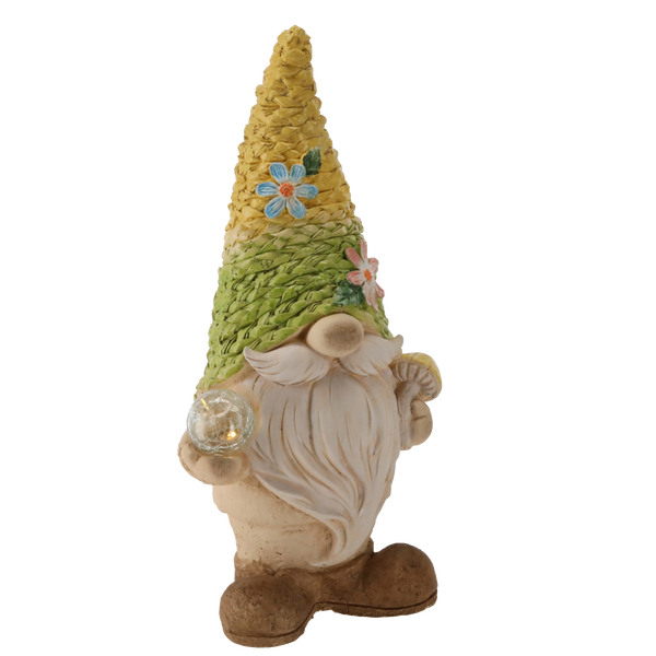 GARDEN FIGURINE – GNOME WITH WOVEN HAT 26 X 17 X 54 CM LED