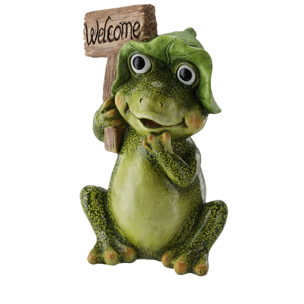 GARDEN FIGURINE – SITTING FROG "WELCOME" 25 X 18 X 36,5 CM